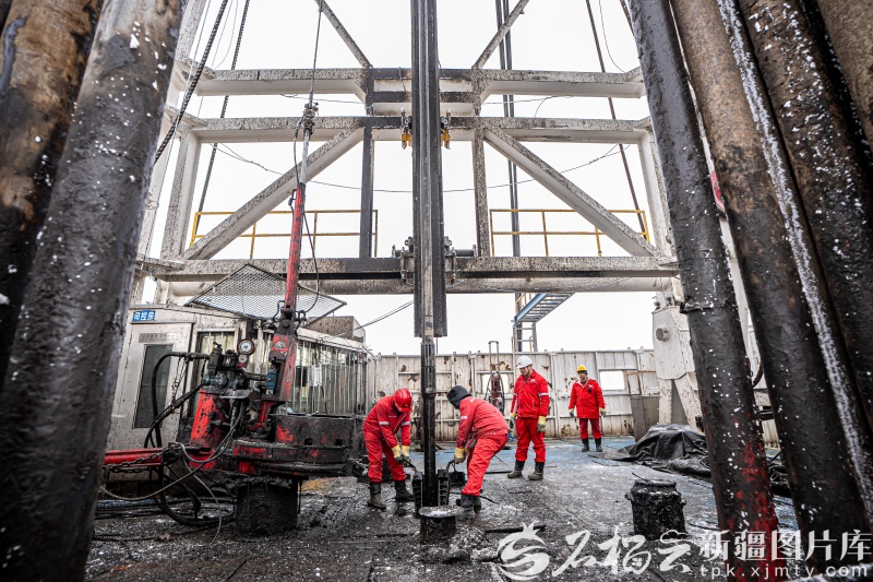12月8日,现场钻机轰鸣进入中石油新疆油田吉庆作业区JHW74-33页岩油井。徐知远 摄