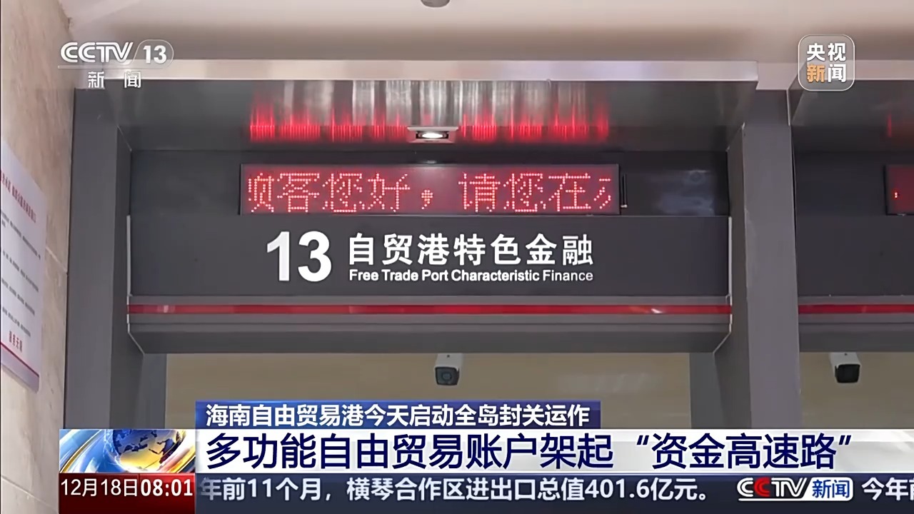 海南自由贸易港全岛封关作业今天正式启动。确保跨境资金高水平自由便利流动是通关作业的一大挑战。中国人民银行创新推出多功能自由贸易账户,依法实现境外账户间资金自由划转和高效流转。